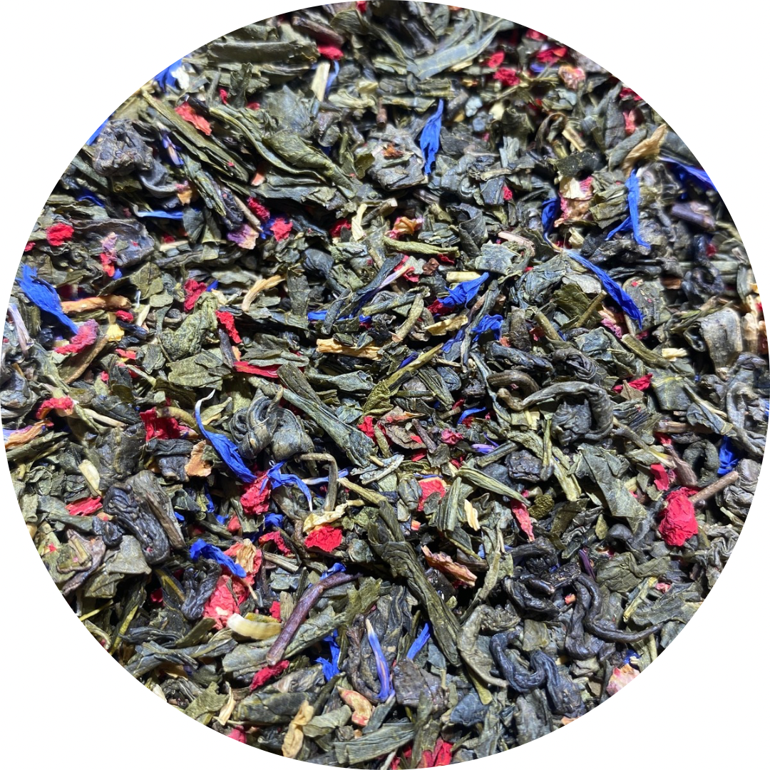 Té verde sencha, granada, flor de granada, aciano y rosas